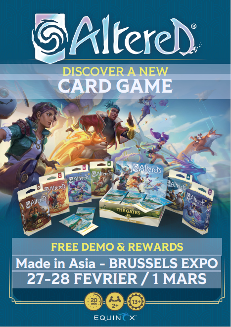 Stand Altered – Découverte du jeu sur le stand, vous pourrez découvrir Altered, un jeu de cartes à collectionner récent. Des initiations seront proposées tout au long de la journée, ainsi que des parties pour débutants et joueurs déjà initiés. Aucune vente, juste le plaisir de partager un jeu passionnant dans une ambiance détendue.