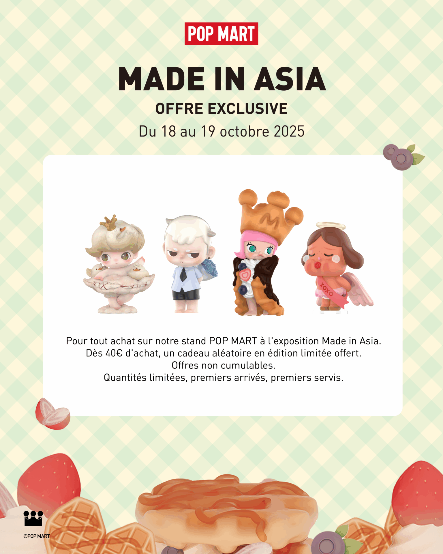 Tijdens het hele beursweekend: bij elke aankoop van €40 of meer aan de POP MART-stand ontvang je een verrassingscadeau.